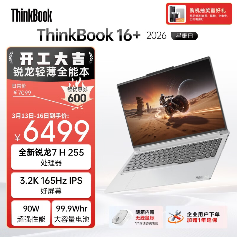自营ThinkPad国家补贴15%联想笔记本电脑ThinkBook16+ 2026全能本 锐龙7 H 255 32G 1T 3.2K 16英寸高刷 星耀白