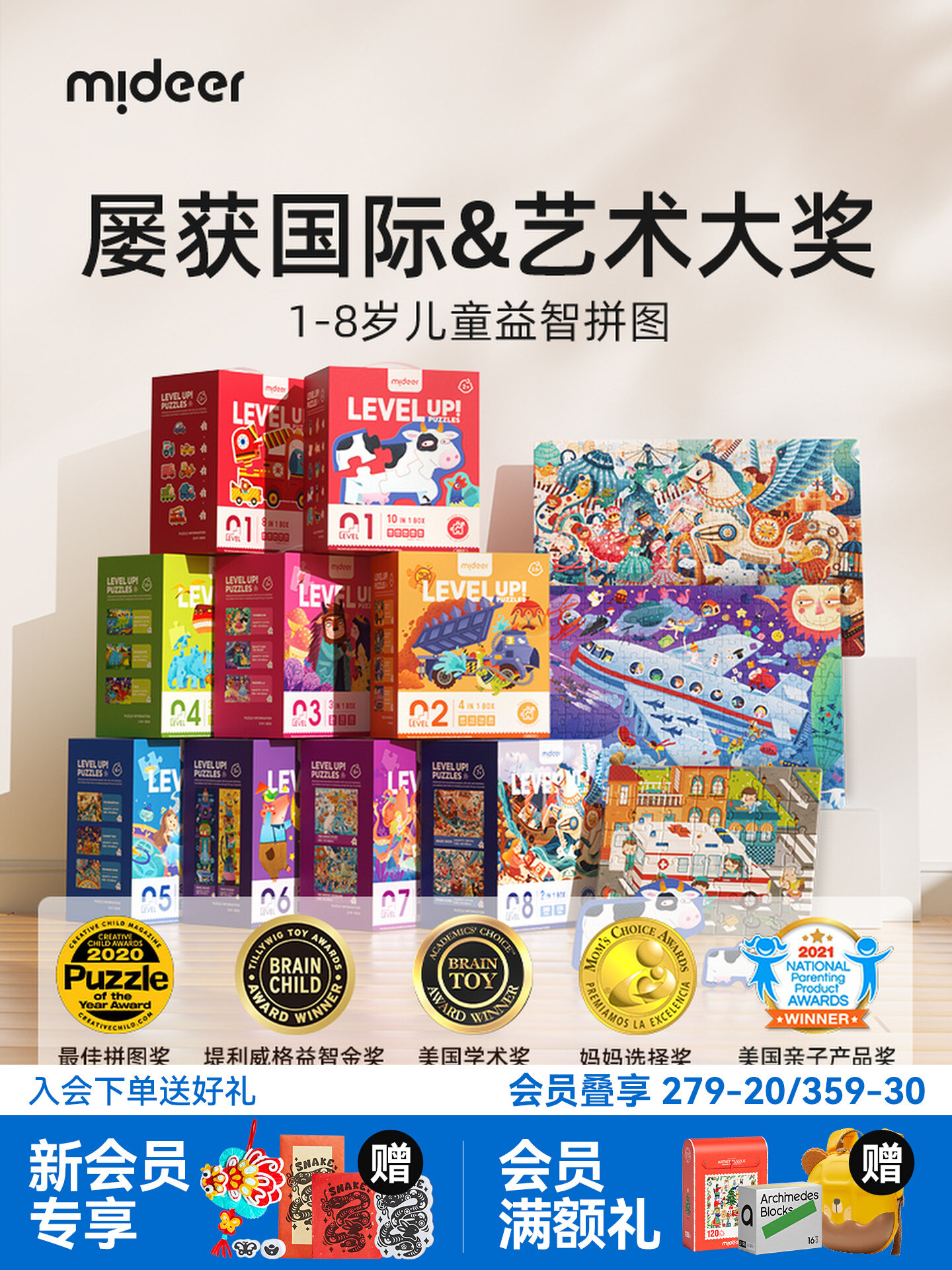 旗舰店mideer弥鹿儿童拼图进阶益智男女孩宝宝幼儿玩具2-3到6岁新年礼物