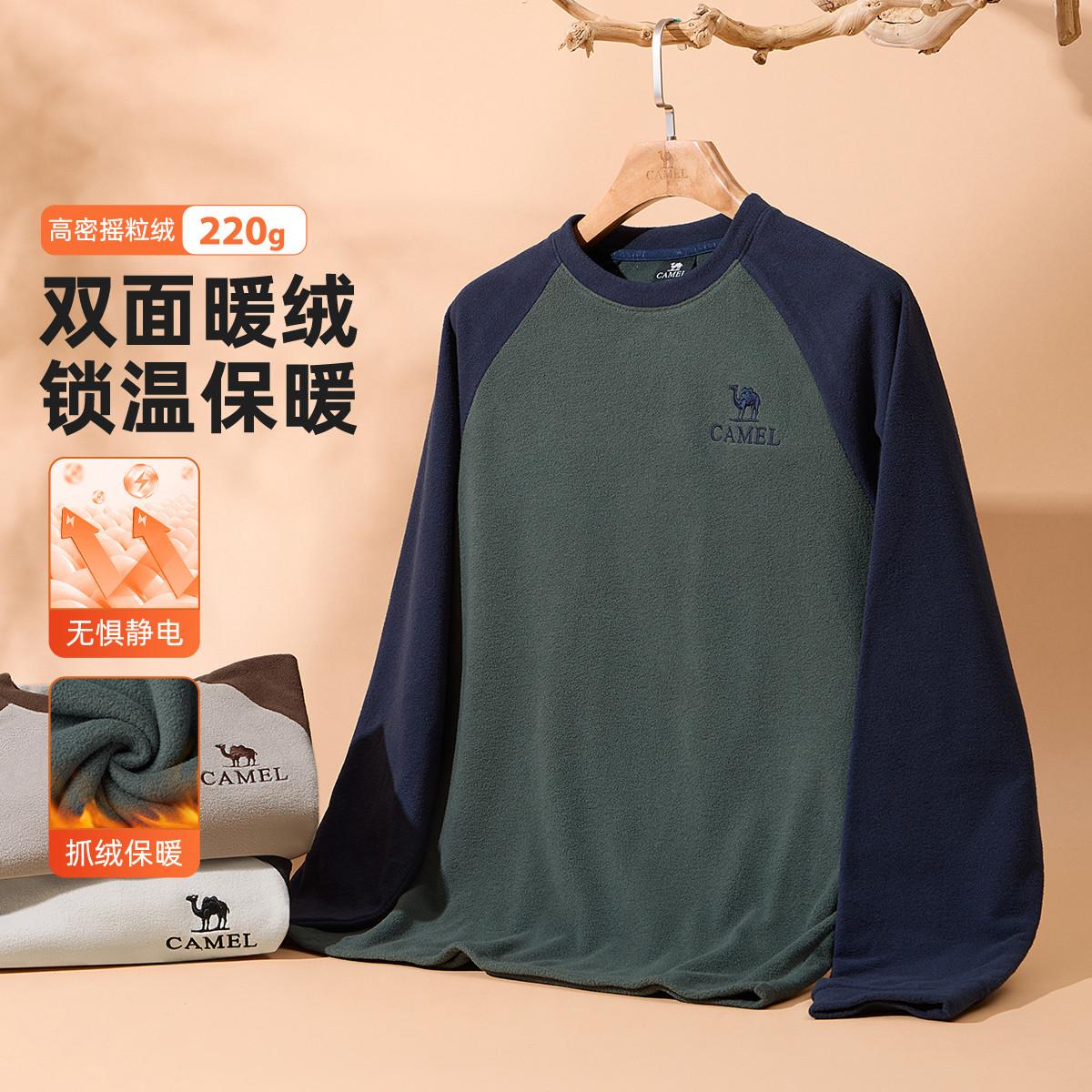 户外抓绒衣男打底衫防风加绒保暖上衣抓绒男款圆领抓绒衣外套套头