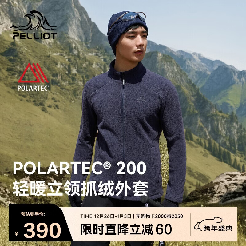 自营伯希和(Pelliot)抓绒衣男Polartec200秋冬保暖摇粒绒冲锋外套女夹克114310191蓝L