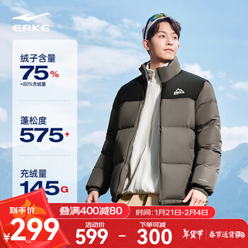 旗舰店鸿星尔克驭光2.0|羽绒服男秋冬新款男女情侣防泼水休闲短款羽绒夹克外套 黏土棕 XL