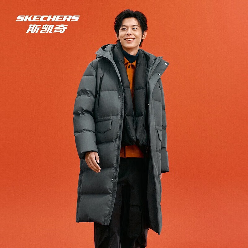 旗舰店斯凯奇(Skechers)2024冬季新款羽绒服长款鸭绒防水轻盈保暖外套抗静电面包服男 铁门灰/006L L