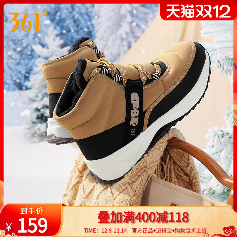 旗舰店绒雪361男鞋运动鞋冬季高帮情侣鞋增高防滑防泼水雪地靴加绒女鞋