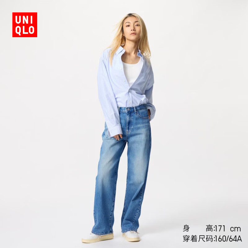 优衣库常规款女装宽松直筒牛仔裤/水洗产品/阔感裤474934 479001 474934/64湖蓝色 36 /175/90B