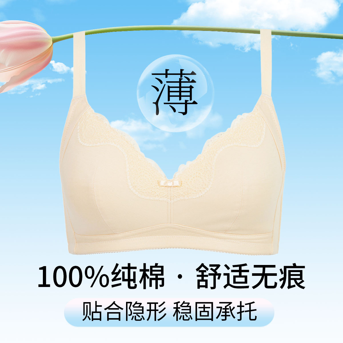 古今 【专柜同款】纯棉杯内衣女夏季薄款无钢圈大胸显小收副乳聚拢文胸