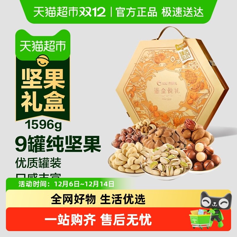 洽洽高端纯坚果礼盒鎏金悦礼年货送礼长辈干果混合礼包健康孕妇恰