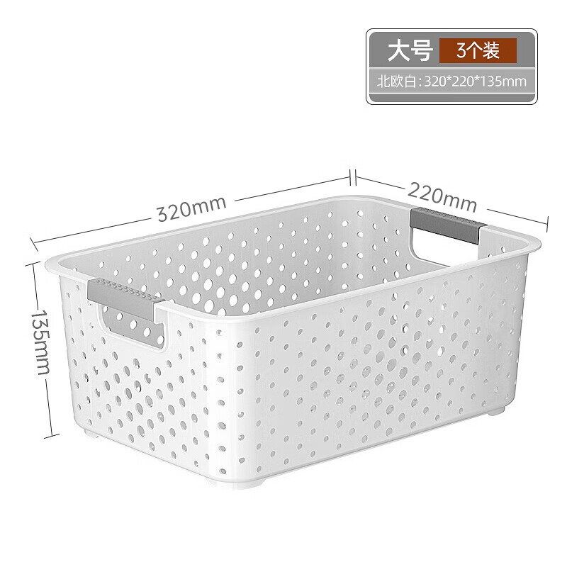旗舰店稻草熊桌面收纳筐家用日式杂物收纳盒厨房橱柜置物盒浴室宿舍零食储物篮 白色大号【三个装】