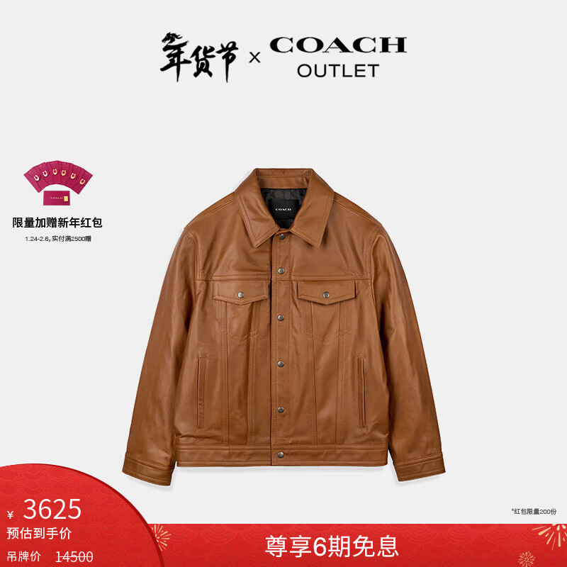 旗舰店蔻驰(COACH)【新年礼物】奥莱男士男装皮革TRUCKER夹克外套户外 橙红色 L