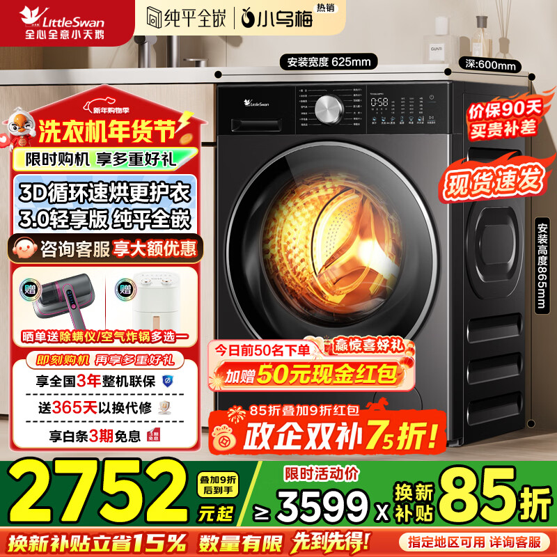旗舰店小天鹅(LittleSwan)小乌梅3.0滚筒洗衣机全自动10公斤家用大筒径洗烘一体机纯平全嵌AI智投 超微净泡 小钢炮 家电补贴 【3.0轻享版带烘干】纯平全嵌智能投放 洗烘一体
