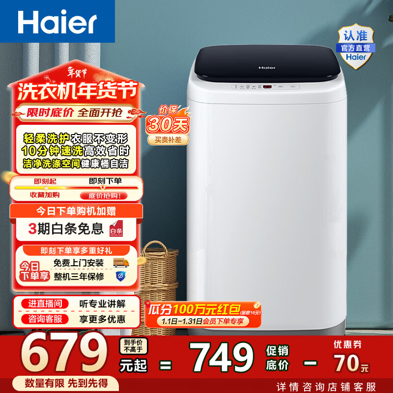 旗舰店海尔(Haier)洗衣机全自动波轮3公斤迷你小型儿童婴儿家用 内衣内裤健康专属速洗护衣 218以旧换新家电国家补贴