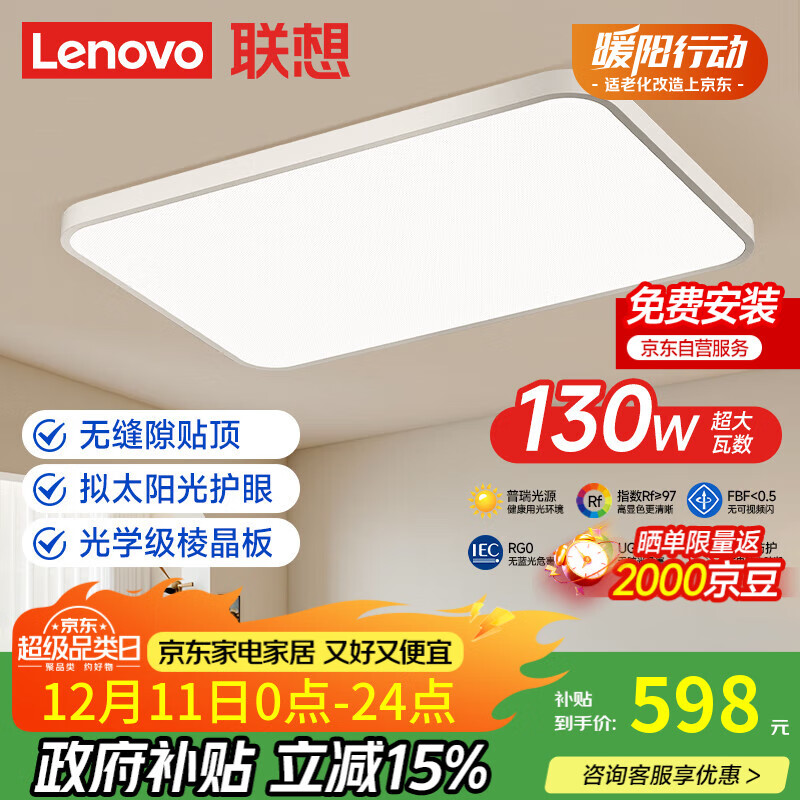 自营联想(Lenovo)客厅灯吸顶灯护眼普瑞光源超薄铝材无缝款客厅大灯主灯三色款
