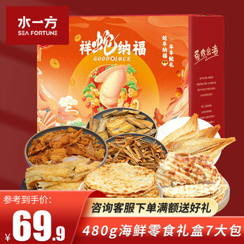 旗舰店水一方海味缤纷礼盒大连特产年货节伴手礼礼盒海味零食大礼包春节正常发 礼盒装480g海味鱼片缤纷礼盒