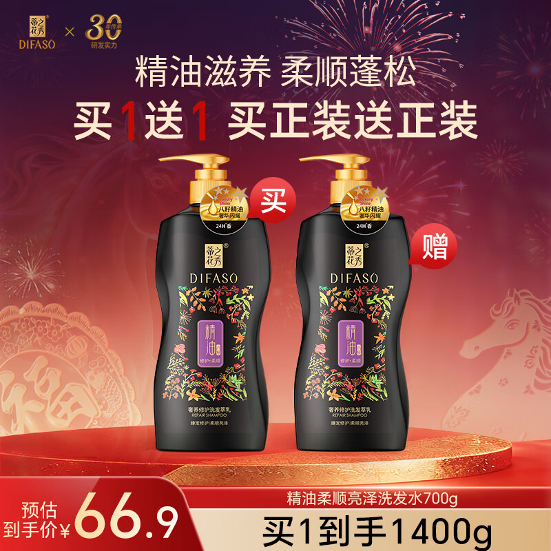 旗舰店蒂花之秀植物精油洗发水露深润去屑柔韧丝滑柔顺亮泽洗头膏男女通用 【柔顺亮泽(洗发700g)】到手2瓶