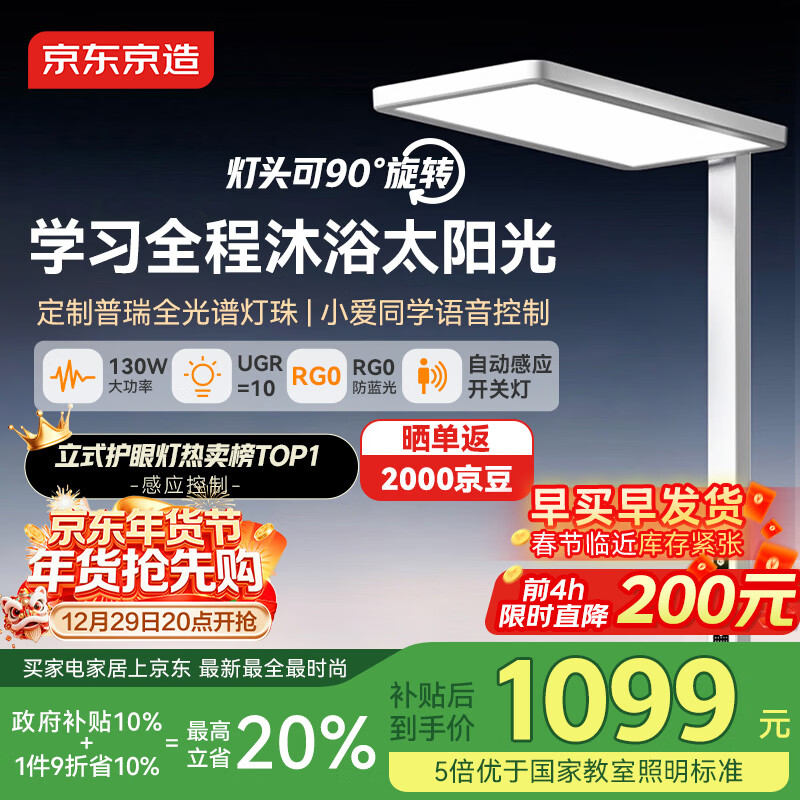 自营京东京造长颈鹿2代立式护眼台灯学习灯全光谱普瑞灯珠大路灯