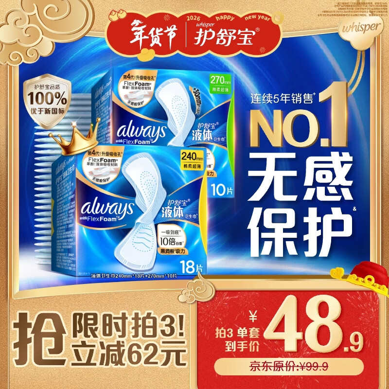 自营护舒宝液体卫生巾日用组合28片姨妈巾无感保护囤货装京东自营官方旗舰