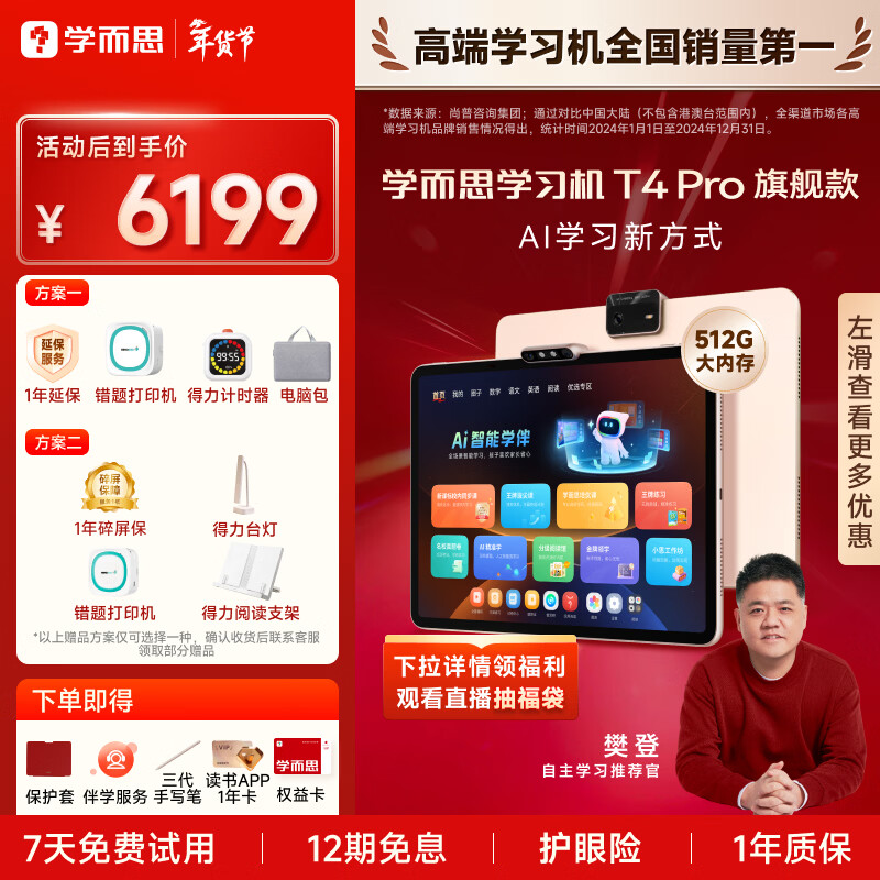 自营学而思学习机T4 Pro 护眼大屏 校内同步课培优课 全学段 学习平板 九章大模型 13.2英寸 12+512GB
