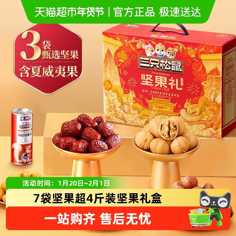 三只松鼠坚果礼盒心意礼春节送礼零食大礼包送长辈健康年货礼盒