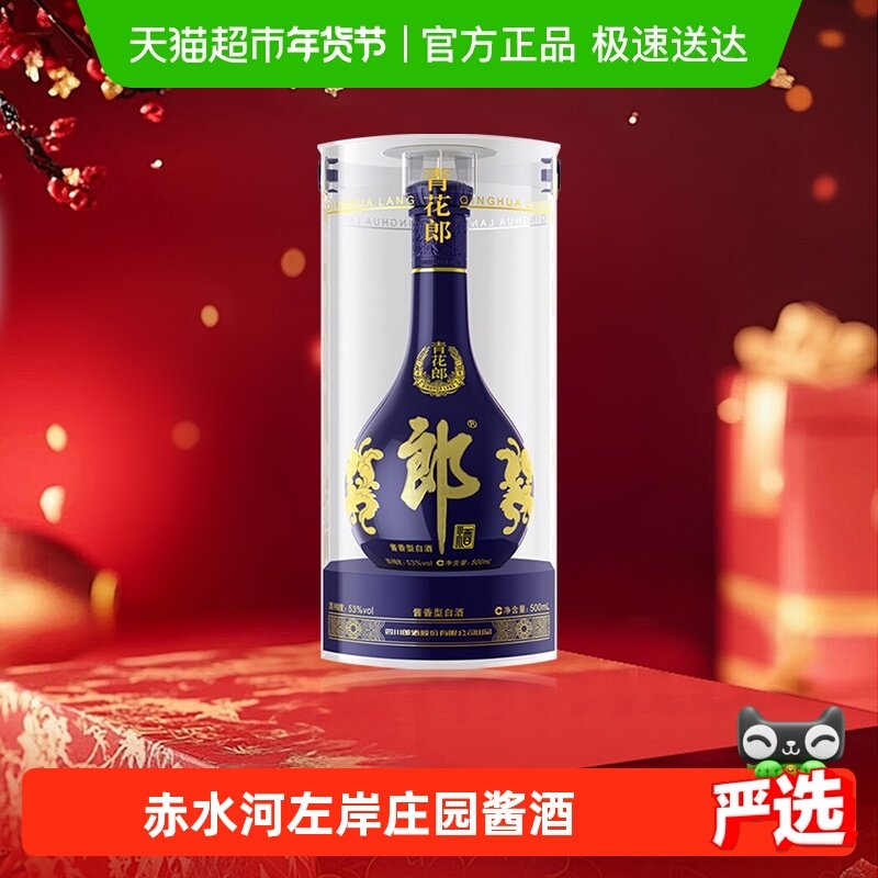 【无礼袋】郎酒青花郎酱香型高档白酒53度500ml*1瓶粮食酒自饮