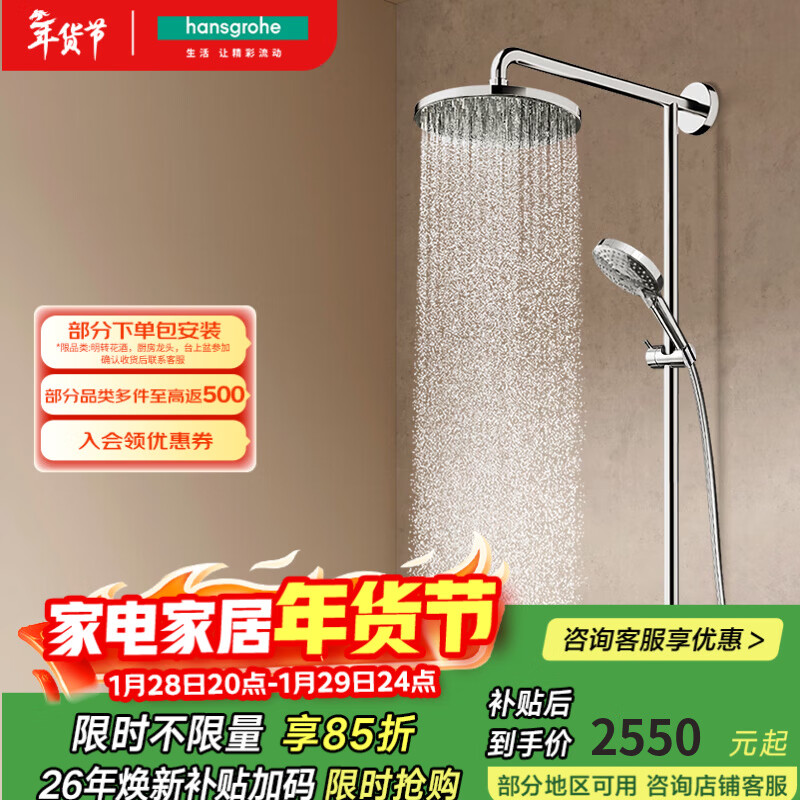 旗舰店汉斯格雅(Hansgrohe)淋浴花洒小境雨沄雨出水式240顶喷预售30天 26173007