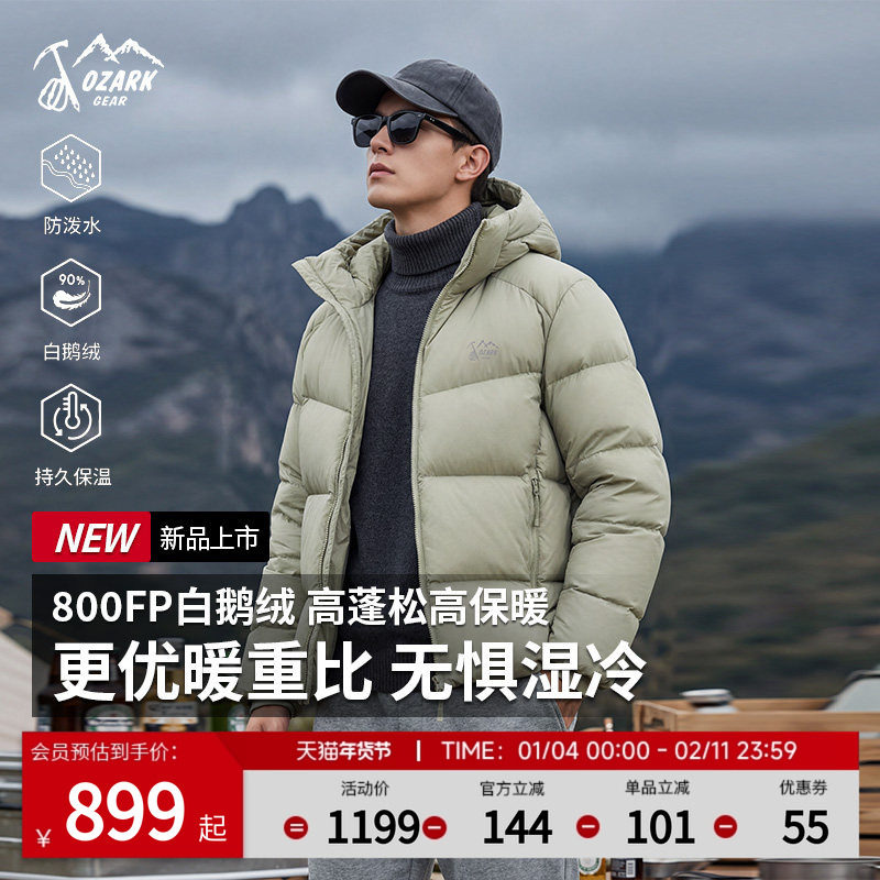 旗舰店Ozark奥索卡25秋冬羽绒服800蓬白鹅绒轻量外套户外徒步透气保暖男