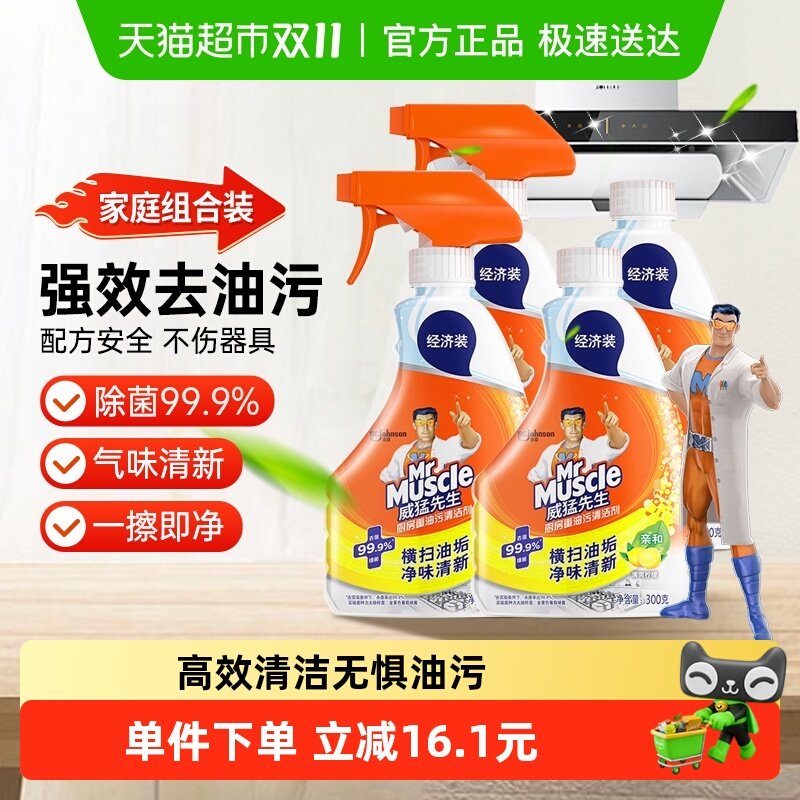 威猛先生厨房重油污清洁剂强力去油污300g*4瓶油污净油烟机清洗