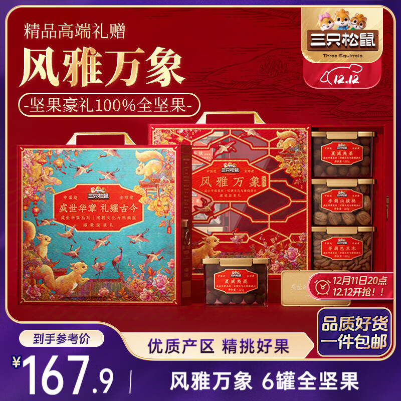 自营三只松鼠高端坚果礼盒1355g/6罐 零食大礼包腰果开心果碧根果团购送礼