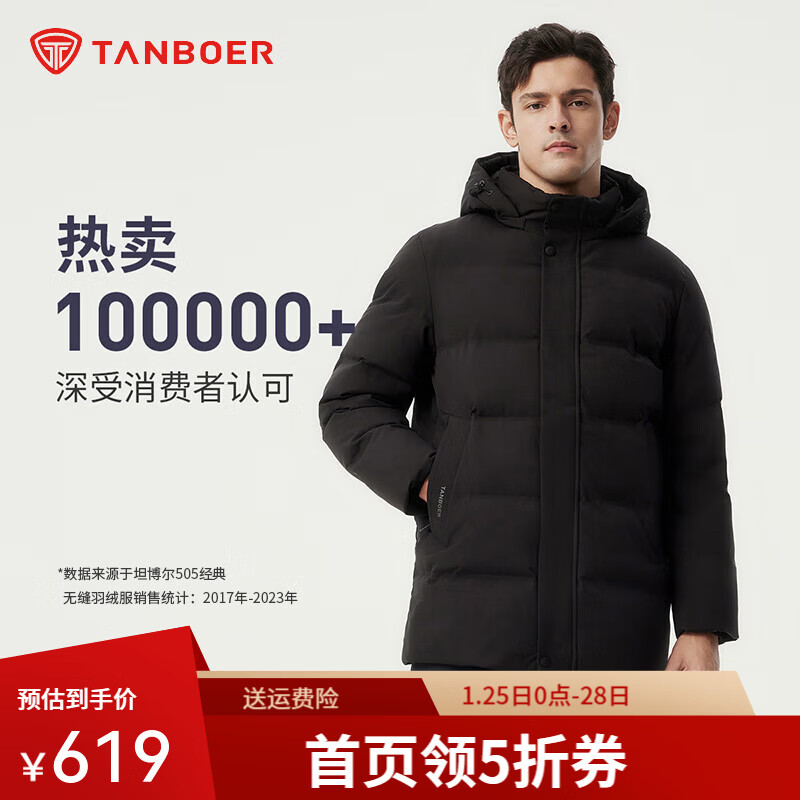 旗舰店坦博尔羽绒服男新款宽松加大休闲保暖加厚可脱卸帽冬商务外套TAF510505D 黑色升级 2XL (185)