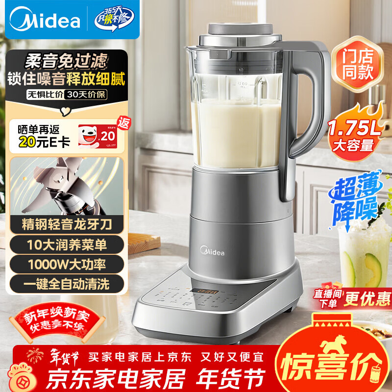 自营美的(Midea)破壁机家用豆浆机静轻音料理机免手洗免过滤预约定时搅拌机辅食机榨果汁机1.75L线下商场同款年货