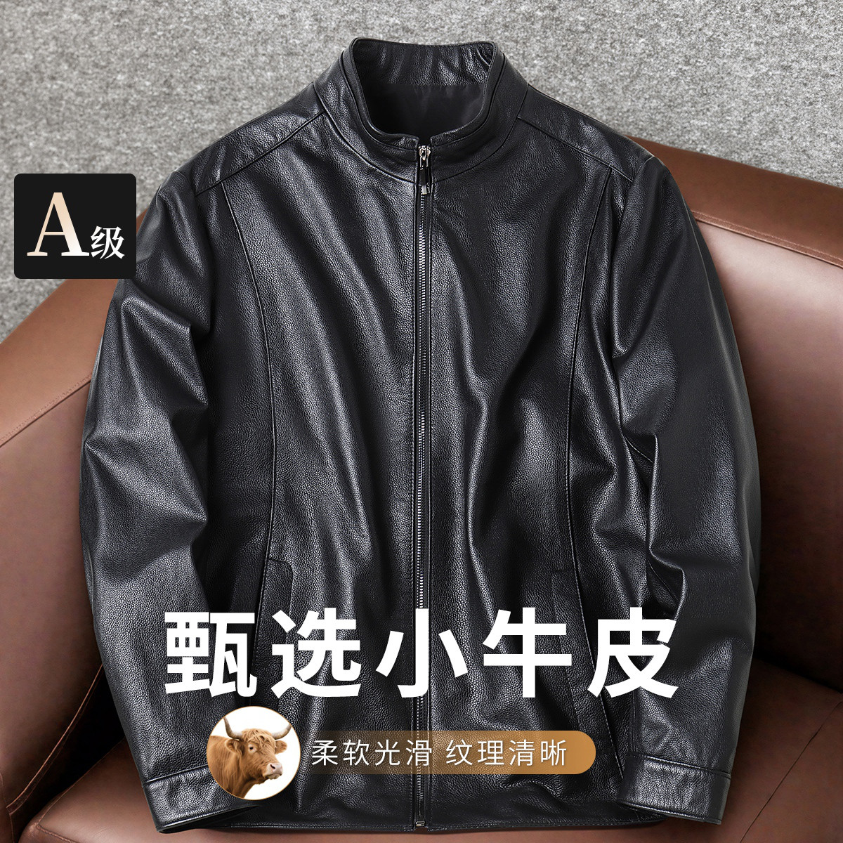 【真皮小牛皮&易打理】秋季男士立领防风单皮夹克男外套男皮衣男