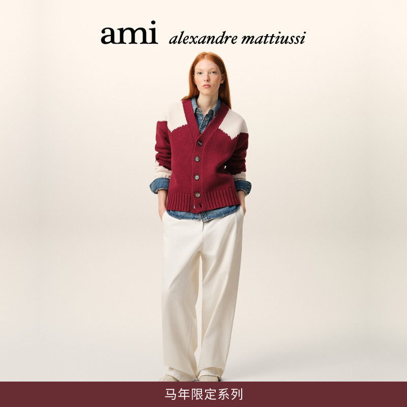 旗舰店【马年限定】Ami Paris 男女同款拼色羊毛ADC爱心开衫 V领针织