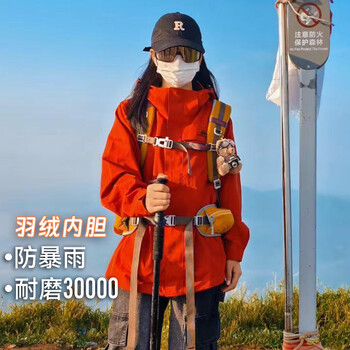 旗舰店拓路者朱雀冲锋衣三合一羽绒内胆防水防风外套女户外保暖冬季学生登山男 朱雀红-羽绒内胆 S