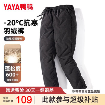 旗舰店鸭鸭(YAYA)羽绒裤男2024冬季新款鸭绒系带运动直筒裤长裤休闲保暖加厚加绒裤 黑色 XL (180)