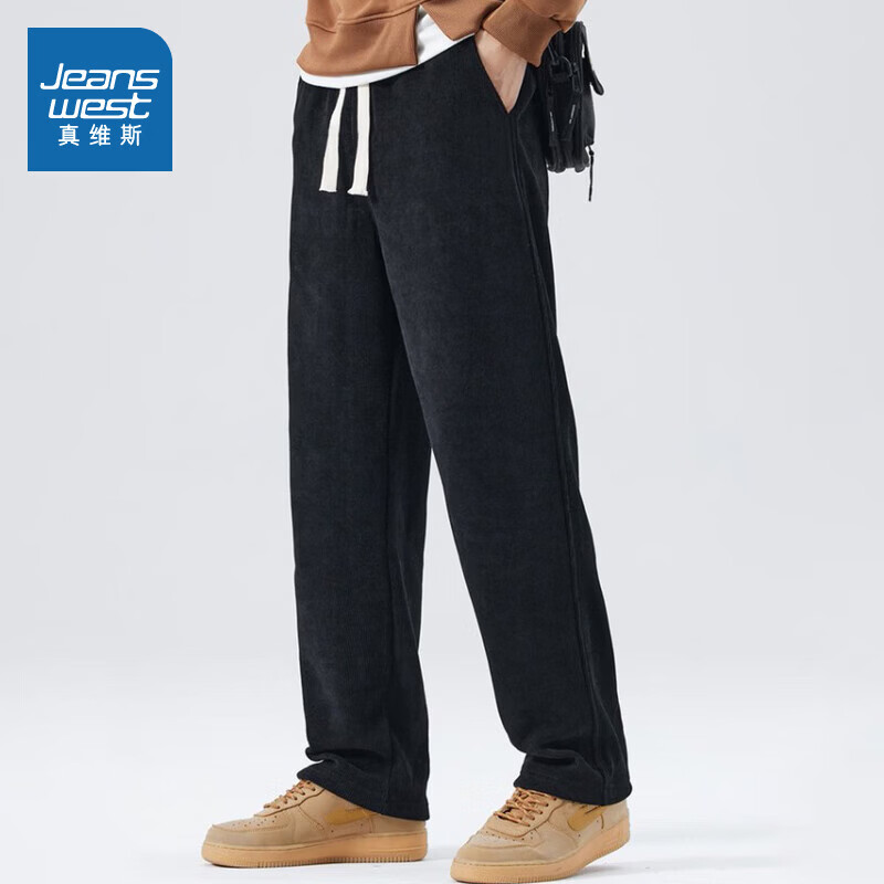 旗舰店真维斯男装直筒保暖长裤 2025冬季新品潮男休闲慢跑裤加绒裤子LR 黑色2010 2XL 185/88A