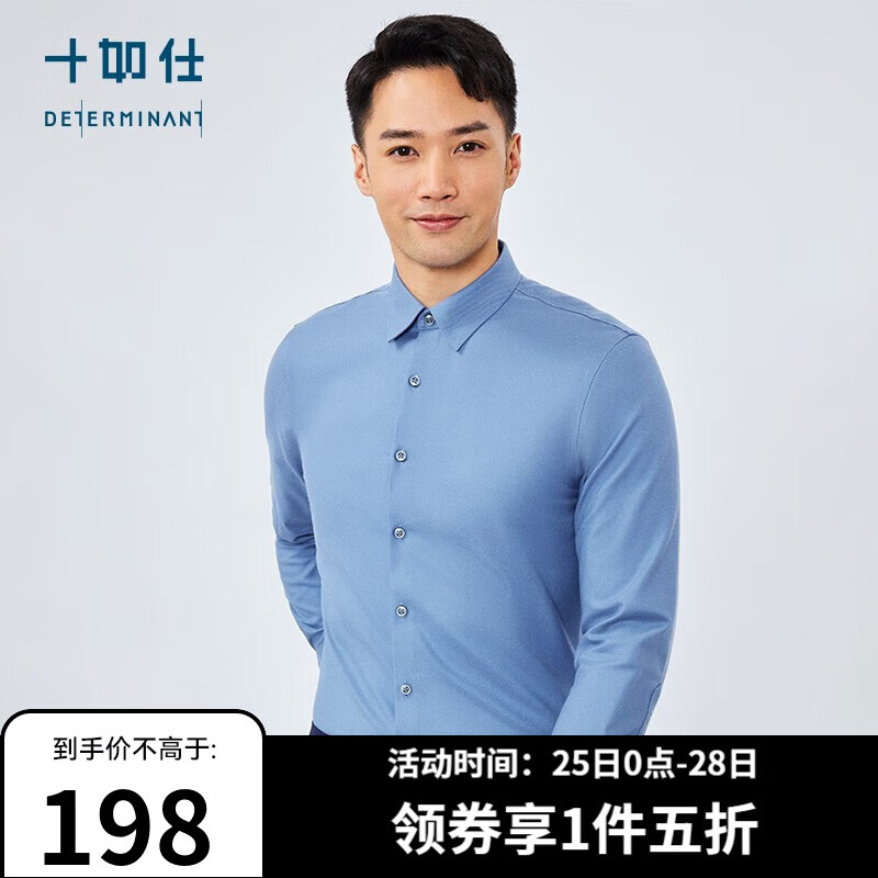 旗舰店十如仕长袖衬衫男加厚保暖 秋冬款男士法兰绒磨毛免烫衬衣SS02-02 靛蓝色-常规版 均码 43+
