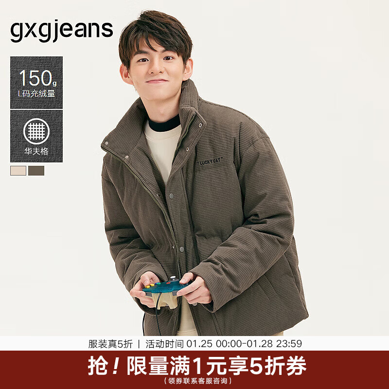 旗舰店gxg.jeans男装2024年冬季华夫格绒感保暖立领羽绒服 2色可选 绿色-1 XL (180)