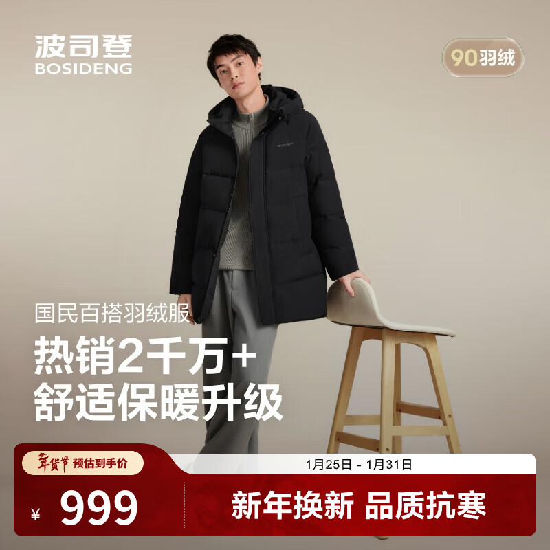 旗舰店波司登(BOSIDENG)25年新商场热销同款送爸爸羽绒服男休闲通勤百搭连帽冬季厚外套 黑色8056 M 175/96A 体重约130-140斤