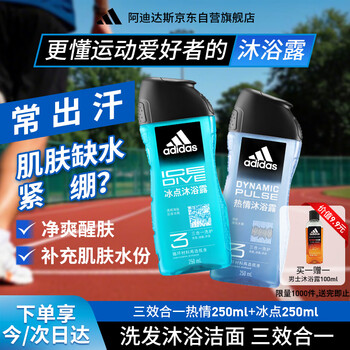 自营阿迪达斯 (adidas)男士沐浴露 洗发洁面三效合一 冰点热情套装500ml