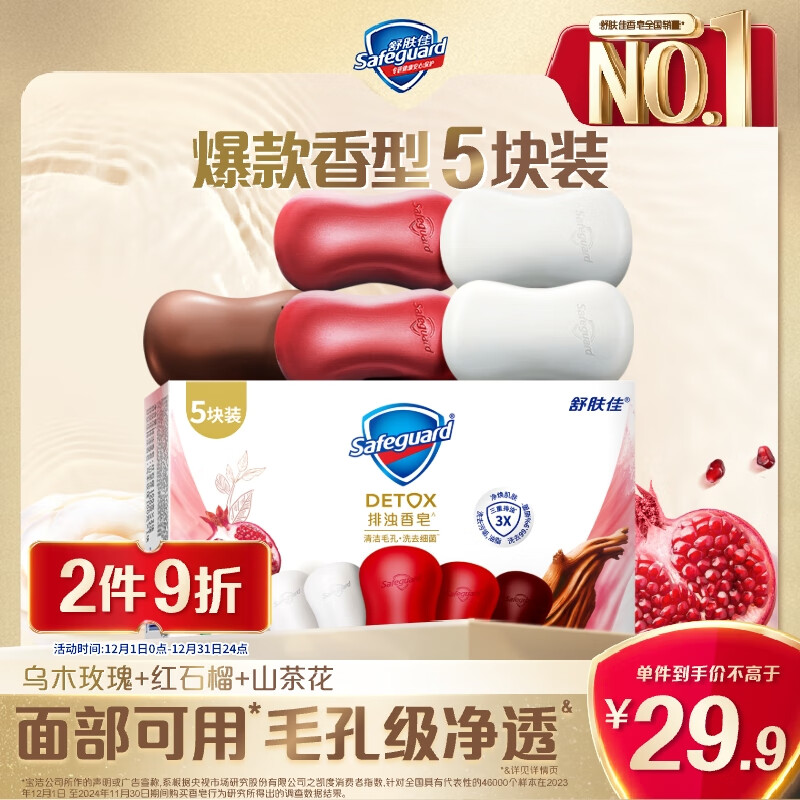 自营舒肤佳排浊香皂100g*5(乌木玫瑰*1+红石榴*2+山茶花*2)肥皂洗脸洗澡洁面
