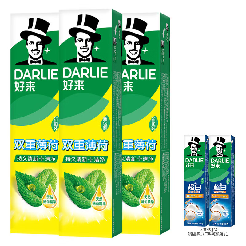 旗舰店好来(DARLIE)黑人牙膏小苏打超白双重薄荷清新口气牙渍黄亮白茶倍健含氟成人 双重薄荷120g*3支