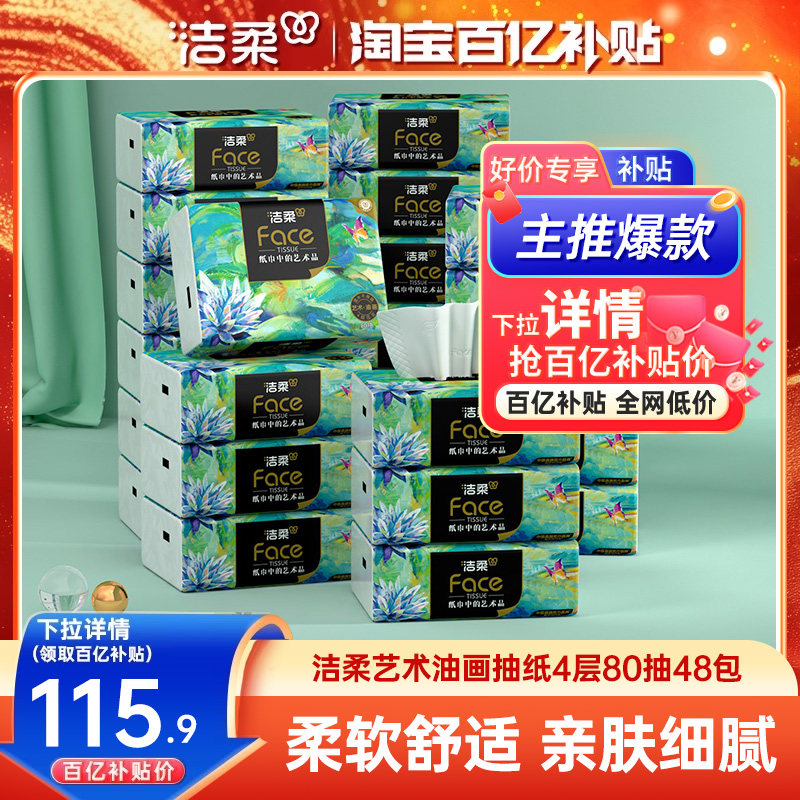 百亿补贴洁柔艺术油画纸巾抽纸4层320张48包加厚餐巾纸家用卫生纸实惠装
