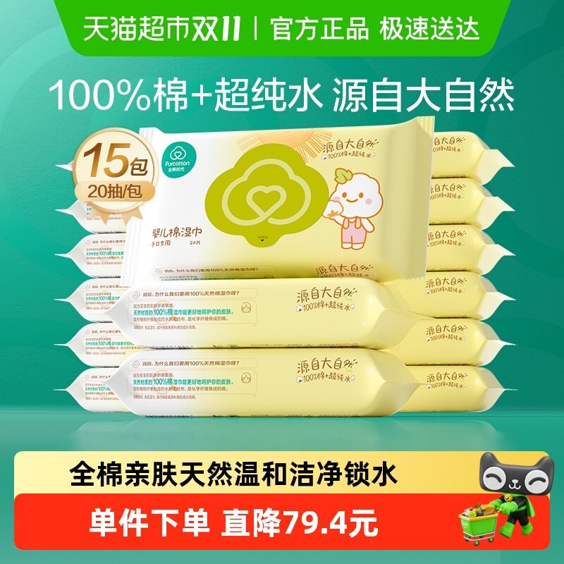 全棉时代婴儿湿巾宝宝新生幼儿手口屁屁专用湿纸巾湿纸巾20抽*15