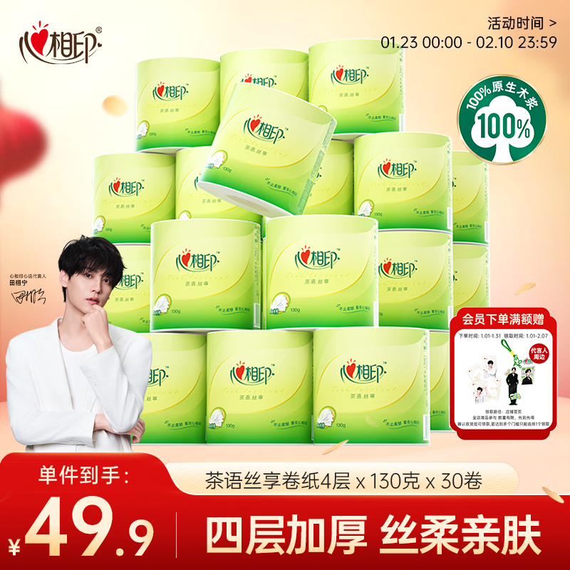 【下拉享优惠】心相印茶语丝享卷纸卷筒纸4层多规格可选囤货箱装