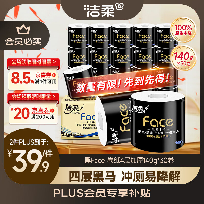 自营洁柔手帕纸黑Face加厚4层6片*30包面巾纸巾小包不掉屑超便携 校园必备