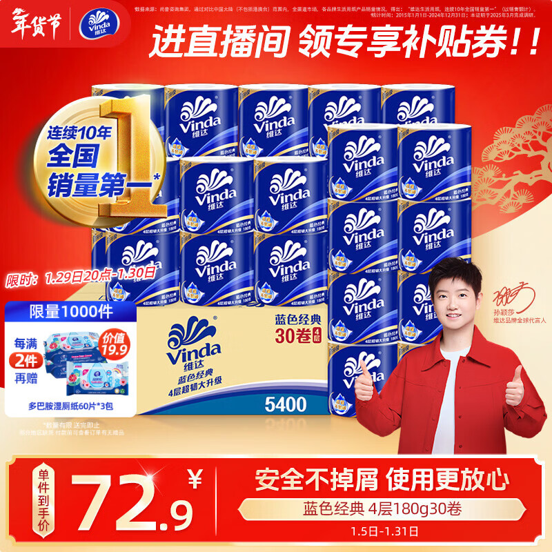 【超定制】维达棉韧压花抽纸3层M码纸巾卫生纸家用实惠整箱装