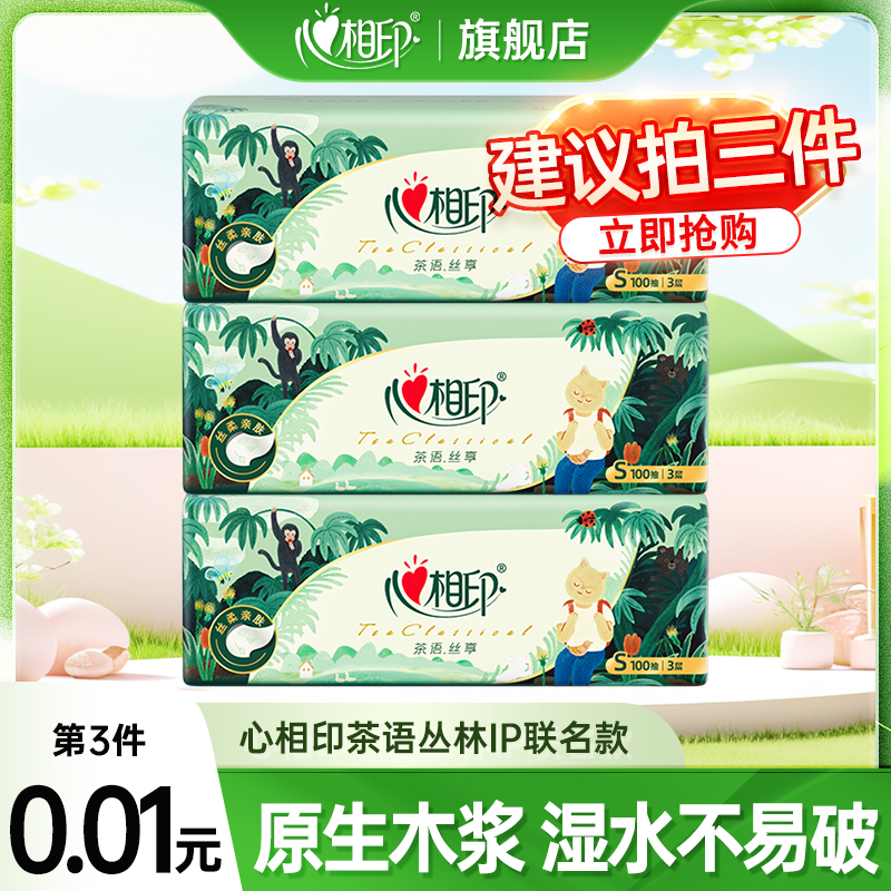 旗舰店【第3件更划算】心相印茶语丛林联名款3层100抽家用抽纸亲肤餐巾纸