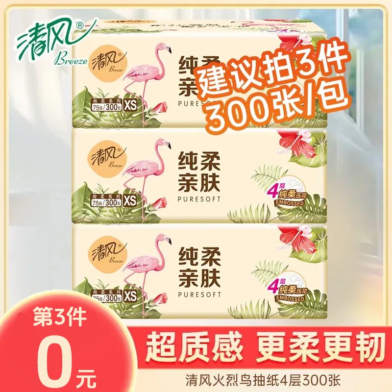 旗舰店【第3件划算】清风旗舰店抽纸实惠装4层加厚火烈鸟面巾纸卫生纸纸抽