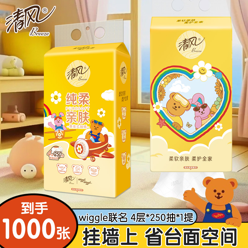 旗舰店【wiggle联名款】清风挂抽抽纸4层加厚家用餐巾纸官方旗舰店面巾纸