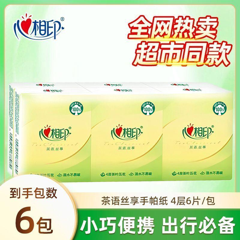旗舰店心相印茶语手帕纸小包纸巾餐巾纸6片6包便携纸巾超市同款旅游必备