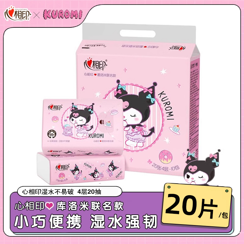 旗舰店【收藏有惊喜】心相印三丽鸥联名款手帕纸加厚4层小包纸巾便携印花