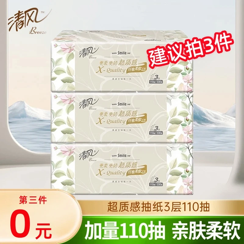 旗舰店【拍3件更划算】清风抽纸面巾纸超质感柔韧纸巾卧室纸抽正品旗舰店
